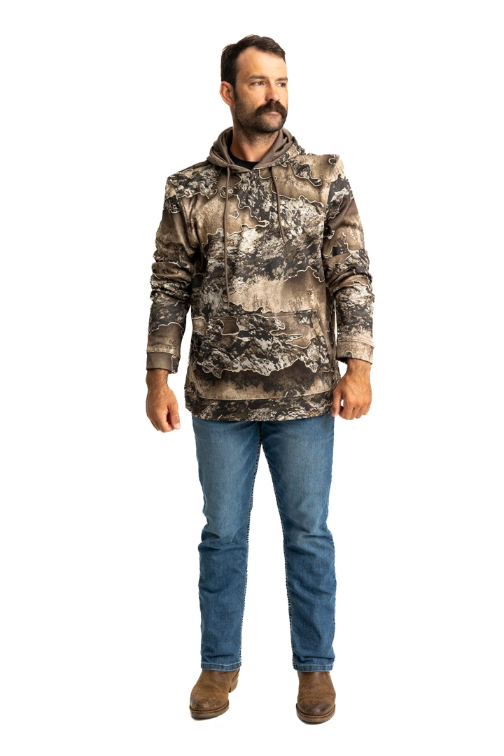 Engineered with the active outdoorsman in mind, this hoodie is your reliable companion in the field. Whether you’re stalking game, setting up camp, or enjoying a brisk morning in the stand, it’s built to withstand the rigors of the outdoors.