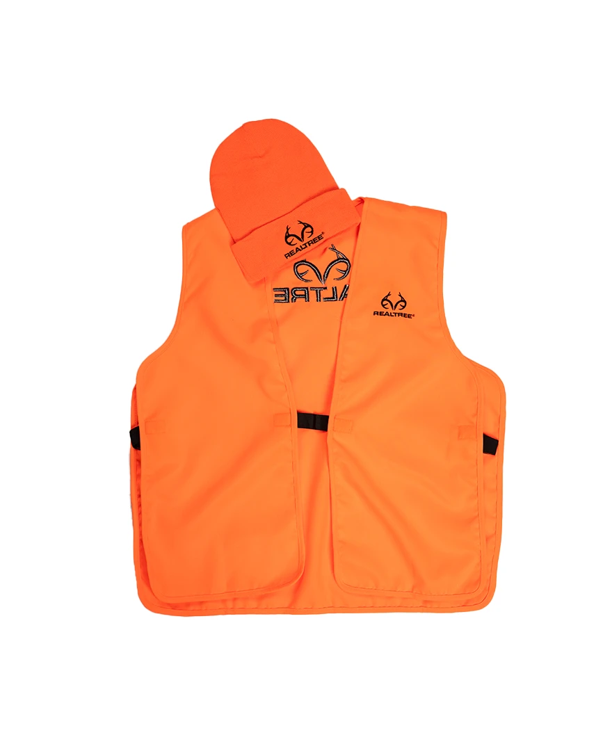 Realtree Unisex Blaze Orange Vest: Designed for maximum visibility and versatility, the blaze orange vest in this combo is a must-have for any outdoor activity. Constructed from durable and lightweight materials, the vest offers a balance of comfort and functionality. The bold blaze orange color ensures you stand out in various environments, enhancing your safety in the field. The vest features a unisex design with an adjustable fit, allowing you to layer it over your favorite outdoor clothing.